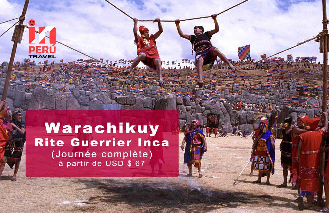 Le Warachikuy, officiellement déclaré Festivité d´Identité Nationale, équivalente à l´Inti Raymi, était un rite guerrier réalisé par les jeunes hommes de la noblesse inca, qui, afin de passer de la jeunesse à la maturité, étaient soumis à de difficiles épreuves physiques de dextérité, risque et courage.